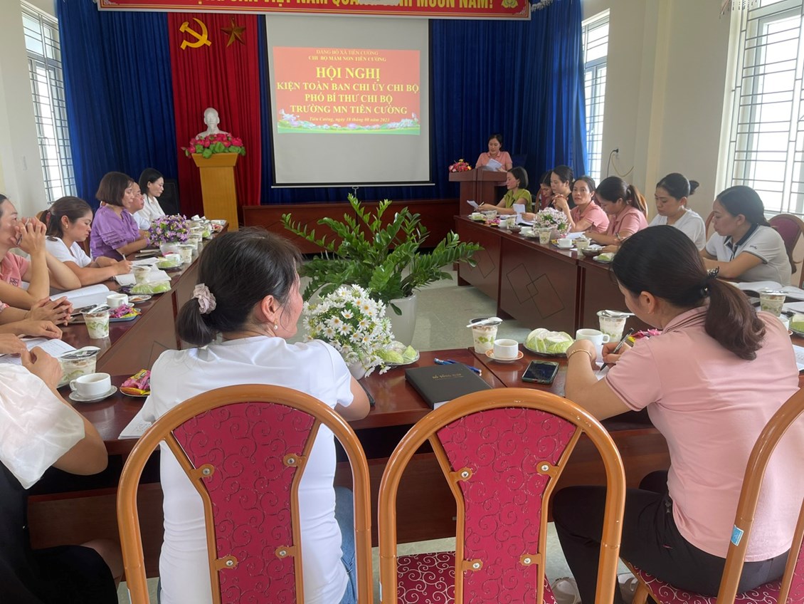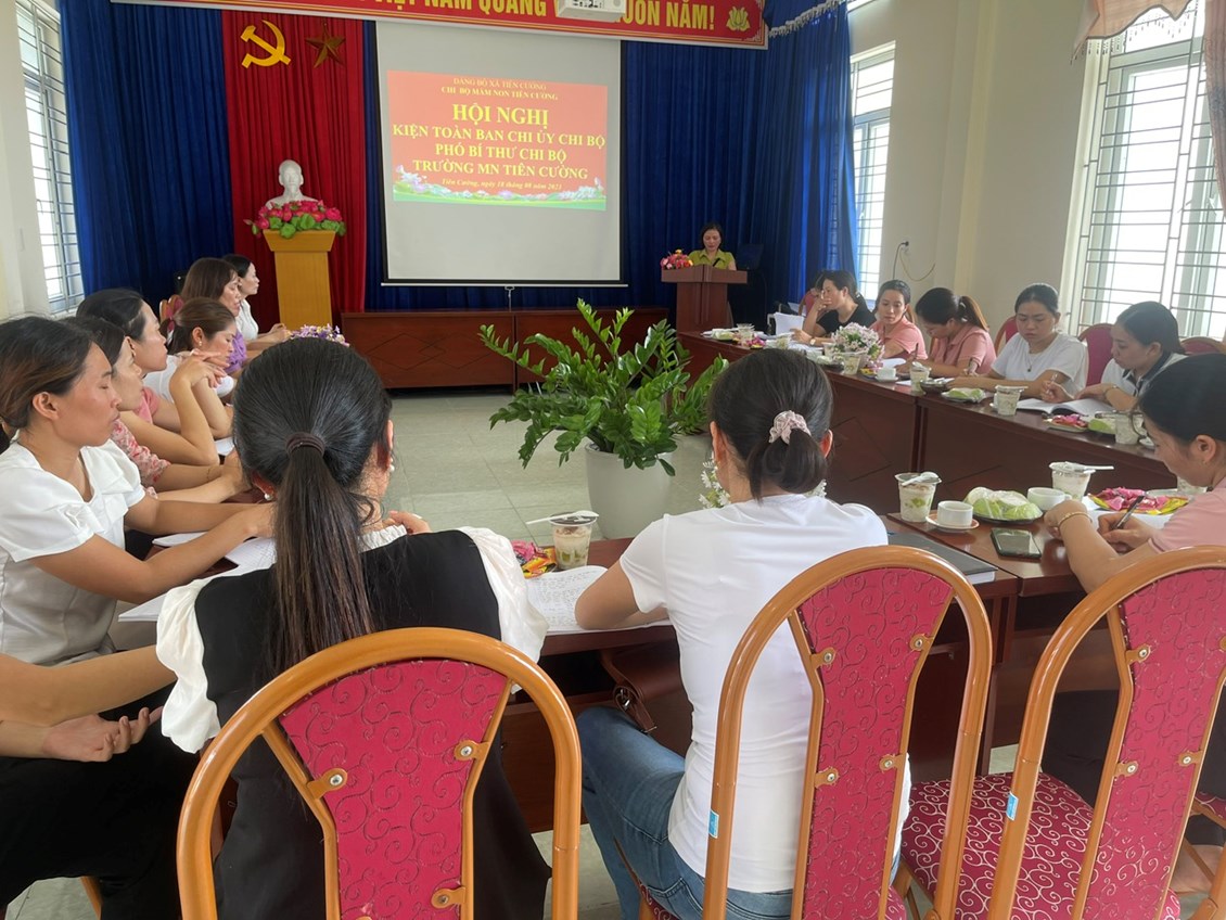 Được sự chỉ đạo, cho phép của Ban thường vụ Đảng uỷ xã, hôm nay ngày 18/08/2023 Chi bộ trường MN Tiên Cường tổ chức Hội nghị nhằm quán triệt tình hình, tư tưởng, bầu bổ sung ban chi uỷ, Phó Bí thư Chi bộ.