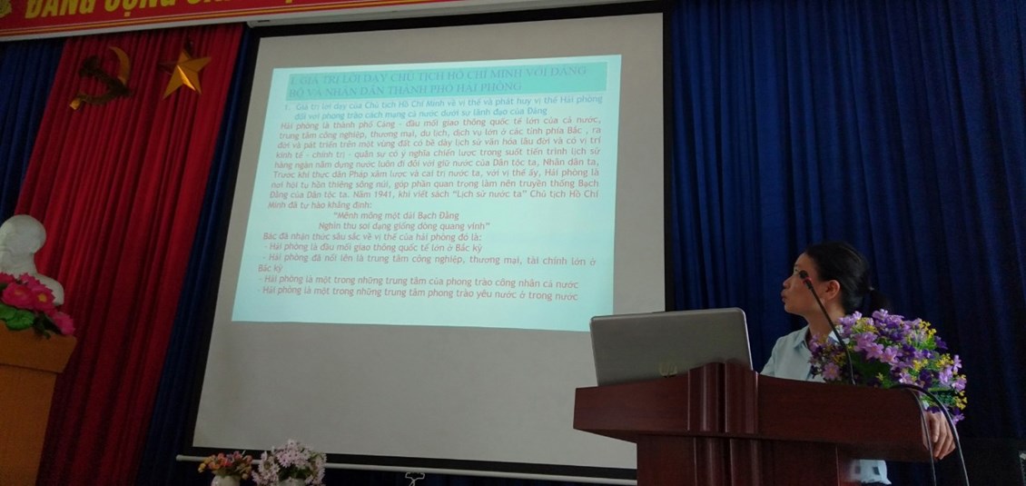 Đồng chí Bí thư Chi bộ đã tổng kết đánh giá công tác tháng 9 triển khai công tác tháng 10 và tổ chức sinh hoạt chuyên đề "Đẩy mạnh học tập và làm theo lời dạy của chủ tịch Hồ Chí Minh với đảng bộ và nhân dân Thành phố Hải Phòng".