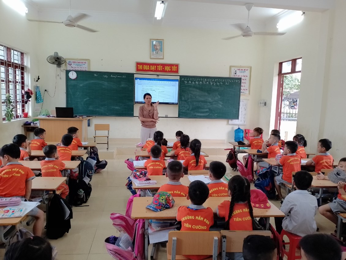 Sáng ngày 12/5/2023, Trường mầm non Tiên Cường đã tổ chức cho tất cả các cháu khối 5 tuổi đi thăm quan Trường Tiểu học Tiên Cường. Các bé được trò chuyện với thầy Hiệu trưởng, cô tổng phụ trách, được tham gia trải nghiệm một giờ học giống như các anh chị lớp 1.