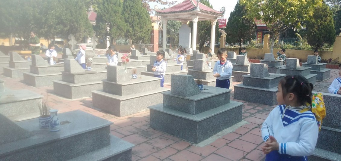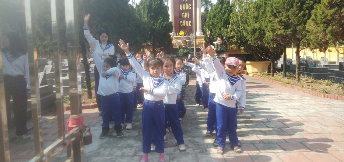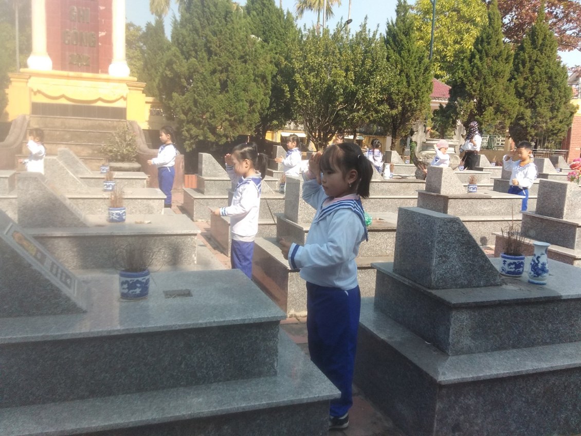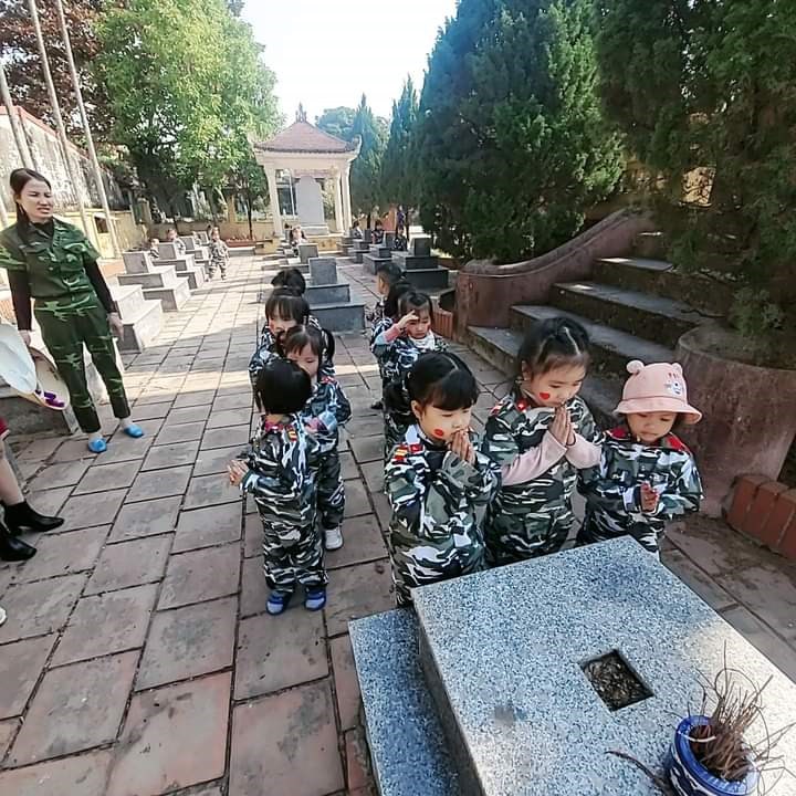 Nhiều bé lần đầu được đến đây tuy nhiên khi được giới thiệu và trò chuyện các con đã hiệu tại sao mà nơi đây lại có nhiều ngôi mộ đến thế, cảnh vật ở đây yên tĩnh và trang nghiêm đến vậy. Sau hoạt động trò chuyện các con được tự tay thắp nhang tại các phần mộ của các anh hùng liệt sĩ. Ánh mắt trong trẻo, nghiêm trang khi thắp hương của các con đã cho chúng tôi những người làm công tác giáo dục thế hệ măng non của đất nước và nhiều các bậc phụ huynh đi cùng thấy rằng: Giáo dục trẻ biết yêu lịch sử của dân tộc, biết ơn các anh hùng liệt sĩ đã ngã xuống để bảo vệ vùng rời bình yên của Tổ Quốc và sự vất vả cống hiến của chú bộ đội thời bình đã hy sinh để các con được vui chơi, học tập cũng không hề khó như ta nghĩ.