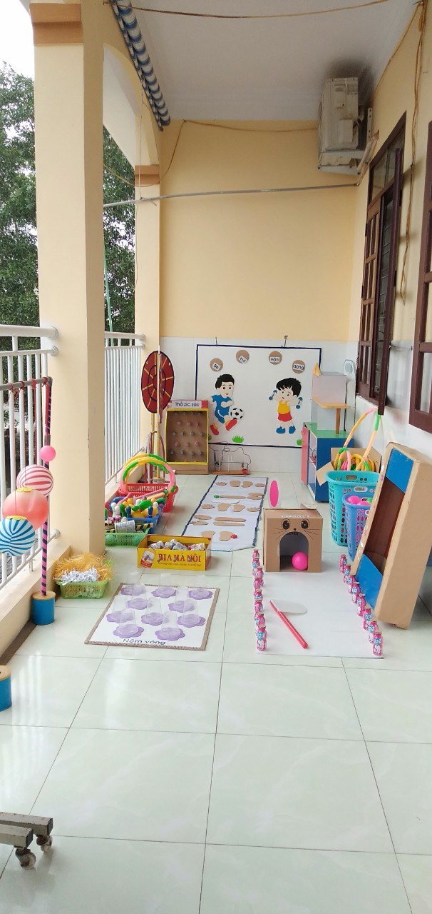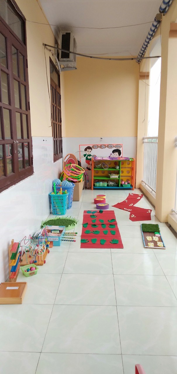 - Nhiều lớp phòng phụ sắp xếp chưa khoa học gọn gàng, chưa có mã hóa, kí hiệu cho các thùng đồ (3A, 3B, 5A, 5C, ..). Nhiều đồ chơi theo văn bản 01 vẫn còn buộc dây treo cao, nguyên trong túi đặc biệt là góc vận động. (5B, 4C)