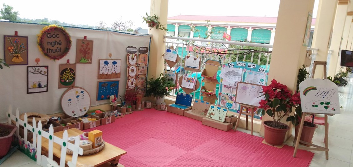 - Môi trường góc chơi, tuyên truyền ở 1 số lớp còn đơn điệu, sơ sài, màu sắc còn lòe loẹt, nguyên liệu thiên nhiên cho trẻ hoạt động còn ít (NTC, 5C, 5A).