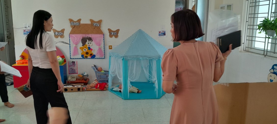 Nhìn chung với tinh thàn trách nhiệm cao trong công việc, sự tận tụy, yêu nghề thì tất cả giáo viên ở tất cả các lớp đã tạo được môi trường trong và ngoài lớp học theo hướng mở, hướng đến việc lấy trẻ làm trung tâm. Màu sắc phối hợp trong các góc chơi hài hòa, nhiều bảng chơi, nội dung chơi mang tính đa năng, kích thích trí tò mò, tư duy của trẻ. Bên cạnh đó các lớp đề cao công tác an toàn, sắp xếp nội vụ khoa học gọn gàng, vệ sinh sạch sẽ.
