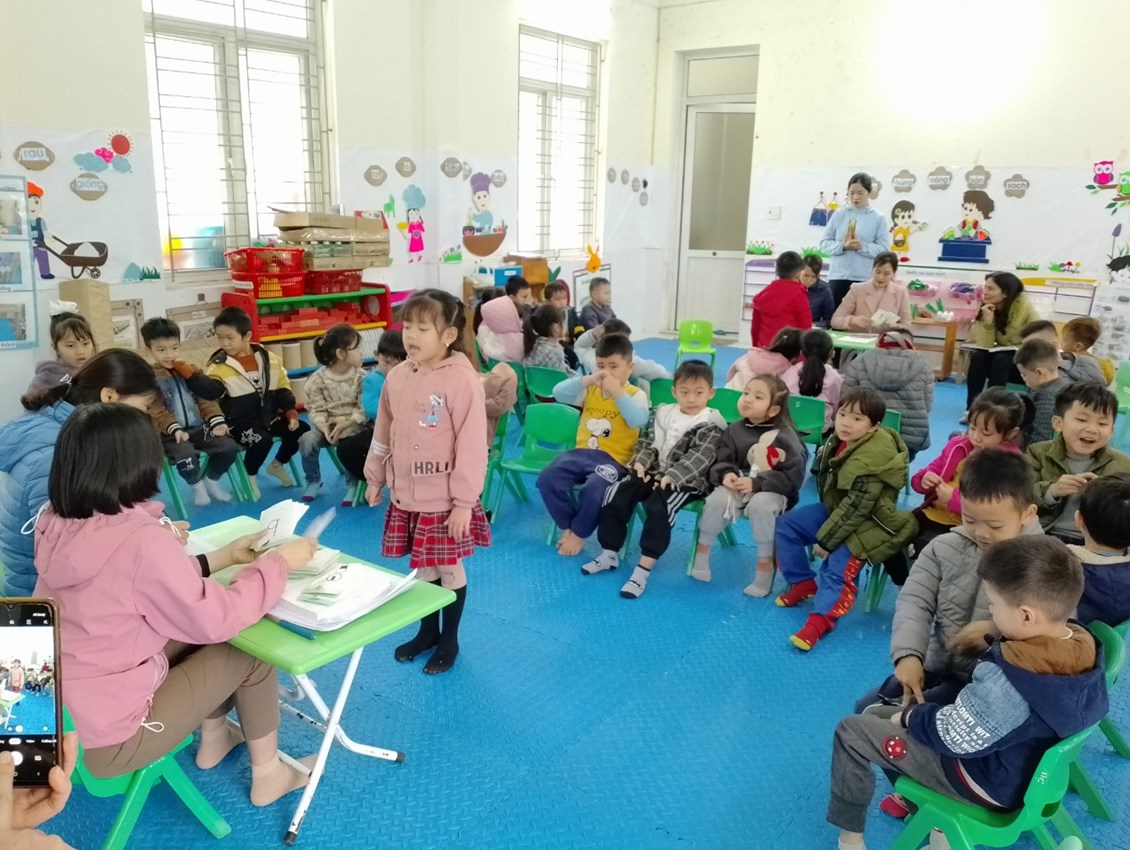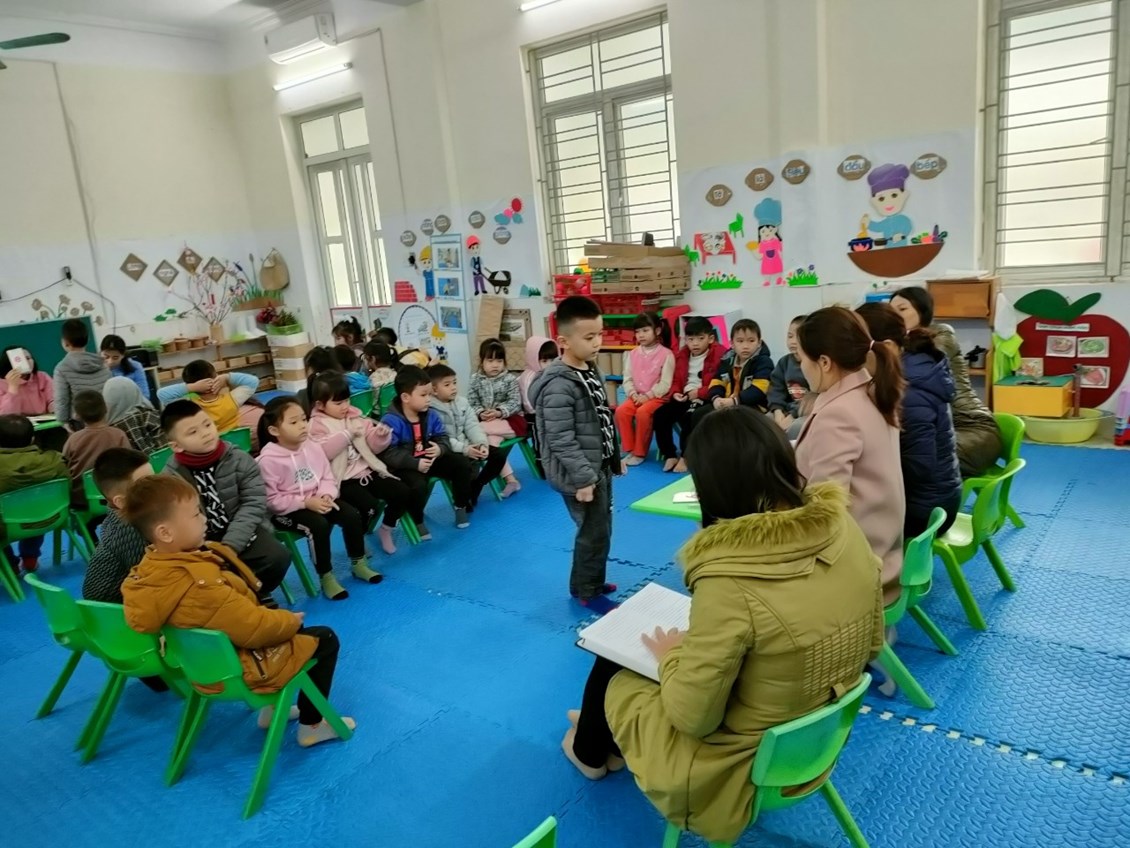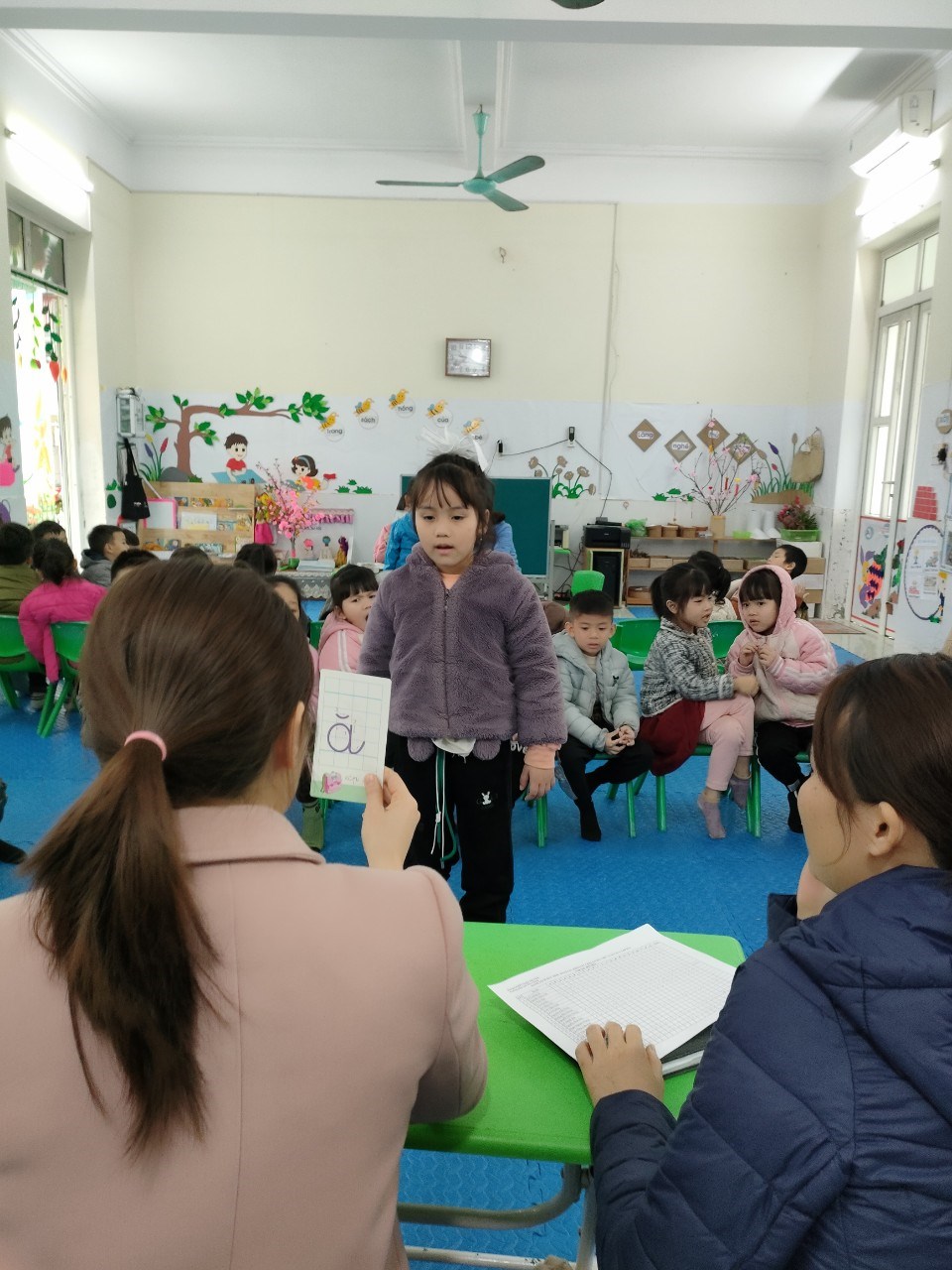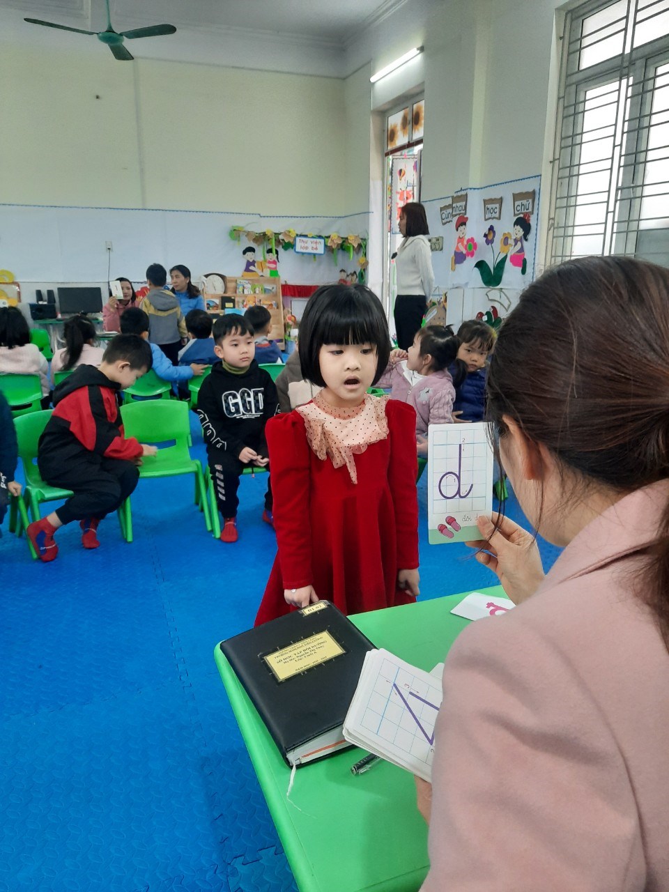 Sau 1/2 ngày tiến hành các hoạt động kiểm tra. Ban chất lượng nhận thấy đa số trẻ đã thuộc hết 23 chữ cái đã học và các chữ số từ 1-8. Giáo viên các lớp tích cực trong việc dạy, ôn luyện chữ, số cho trẻ. Tuy nhiên ở cả 3 lớp vẫn còn 1 vài trẻ phát âm chưa tròn vành rõ chữ p, q, b,d,đ. Đồng chí Vũ Thị Xuyến-Hiệu trưởng nhà trường phát biểu tổng kết, đánh giá kết quả và kiến nghị giáo viên các lớp tăng cường ôn luyện cho trẻ ở mọi lúc mọi nơi, ưu tiên các trò chơi với chữ cái để trẻ hứng thú hơn.