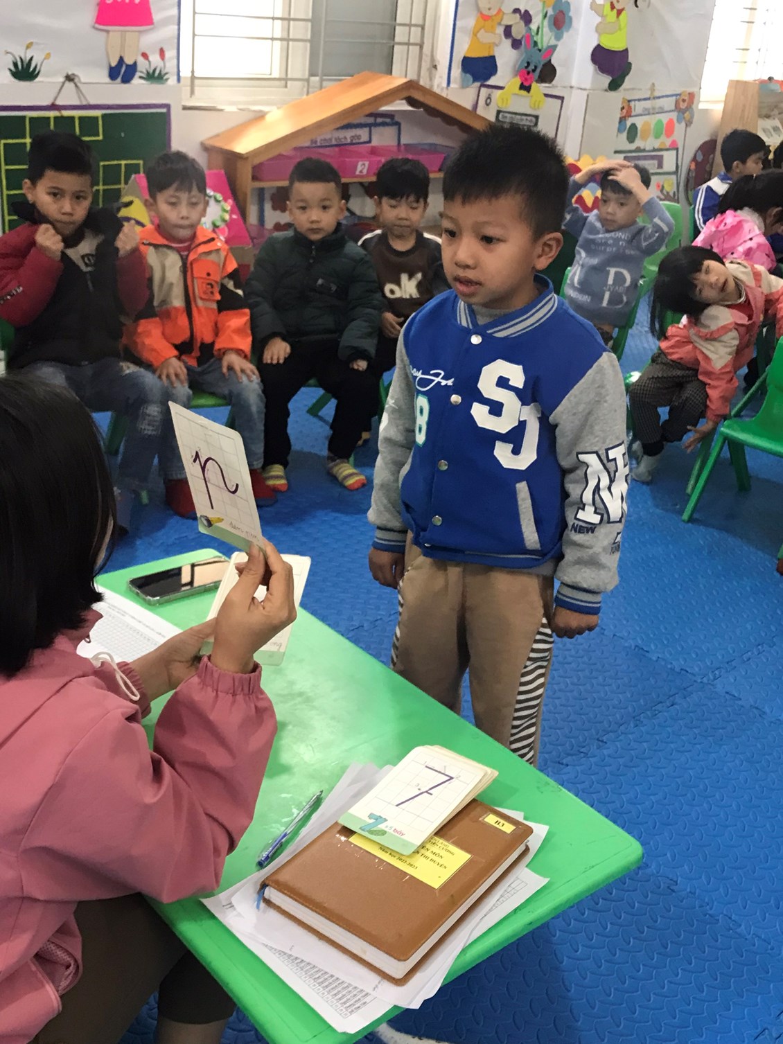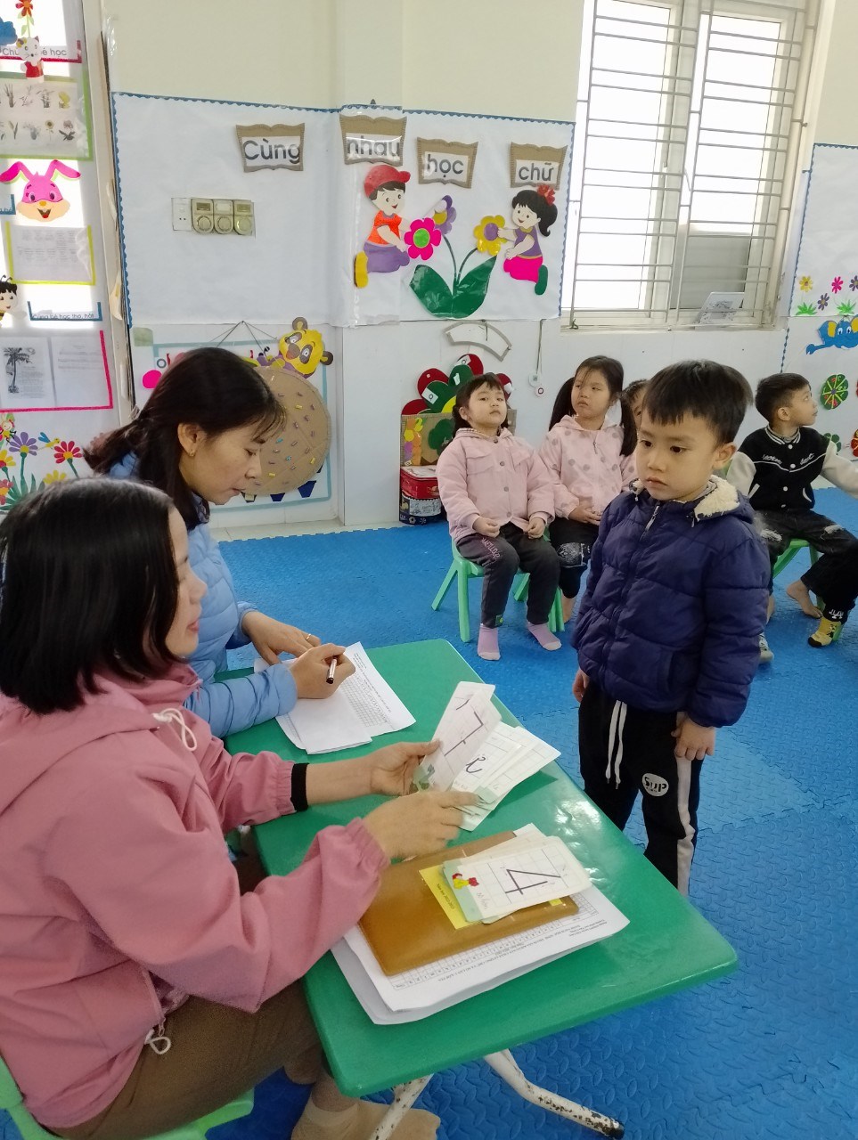 Ban chất lượng nhà trường vào từng lớp chia thành 2 nhóm kiểm tra lần lượt từng trẻ đánh giá tích vào bảng liệt kê những chữ cái, chữ số trẻ đã thuộc, chưa thuộc. Để từ đó đề nghị giáo viên tăng cường hơn nữa các hoạt đọng ôn luyện chữ và số cho trẻ. Bên cạnh đó giúp phụ huynh biết những chữ cái mà con chưa thuộc từ đó quan tâm dành thời gian cho con, dạy con học khi trẻ ở gia đình. Từ đó tạo ra sự phối hợp đồng điệu giữa gia đình và giáo viên để có phương pháp giáo dục con tốt nhất. Phấn đấu đến cuối năm trẻ sẽ thuộc 29 chữ cái tong bảng chữ cái Tiếng Việt, nhận biết các con số từ 1-10 và biết số lượng, thêm bớt số lượng chia nhóm đối tượng trong hạm vi 10. Như vậy trẻ có hành trang tốt nhất, tự tin mạnh dạn bước vào cánh cửa trường tiểu học.