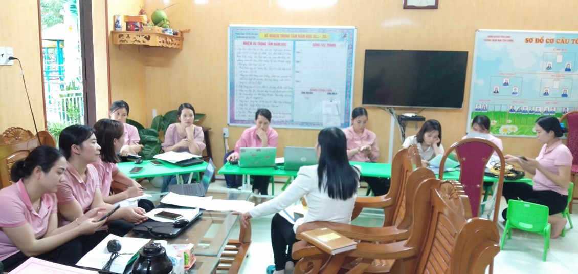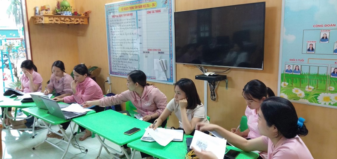 Chiều ngày 11 tháng 04 năm 2023, bộ phận chuyên môn giáo dục Trường mầm non Tiên Cường đã tiến hành bồi dưỡng chuyên môn cho tất cả cán bộ giáo viên trong nhà trường. Do đặc thù công việc nên bộ phận chuyên môn đã chia thành 2 tốp bồi dưỡng với nội dung như sau: