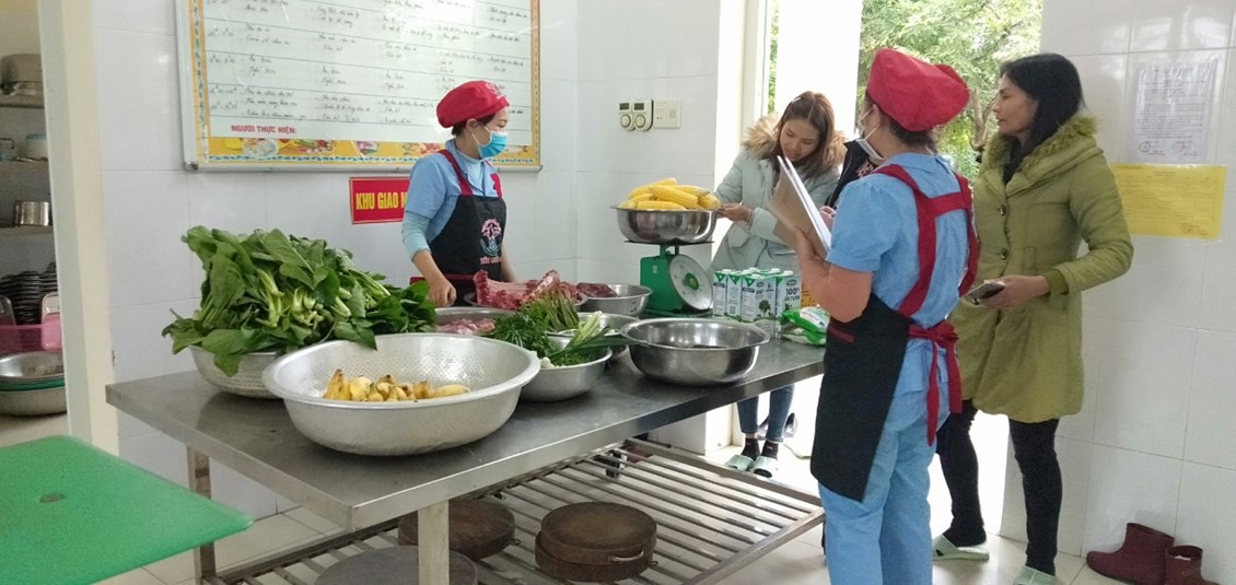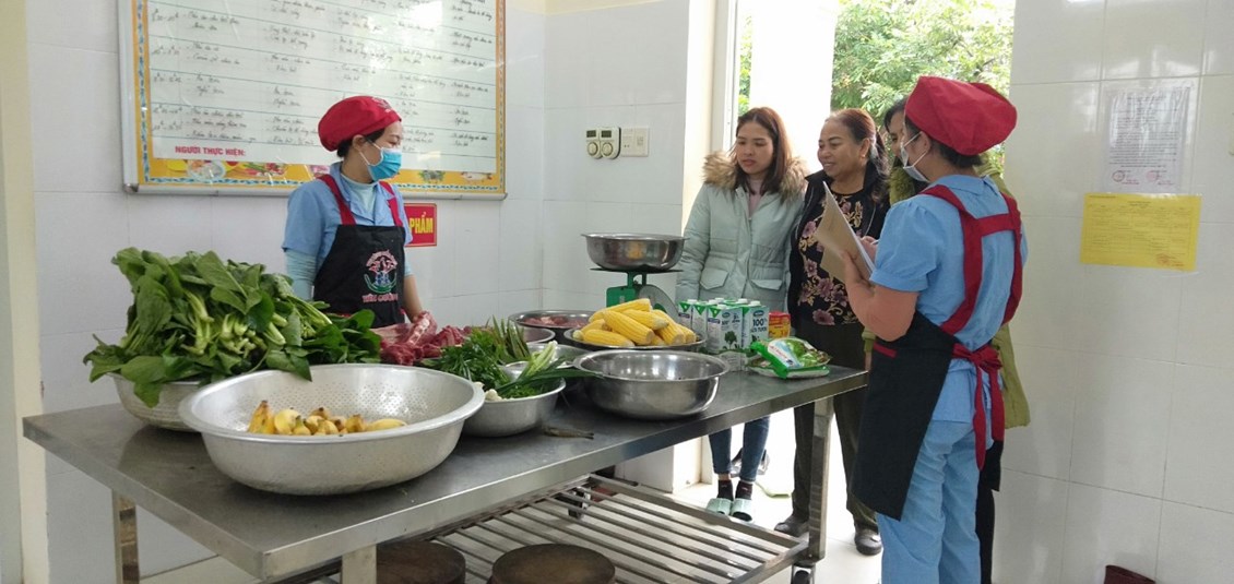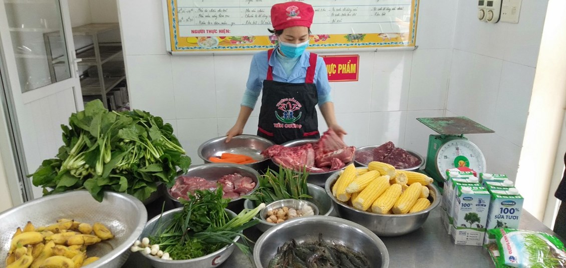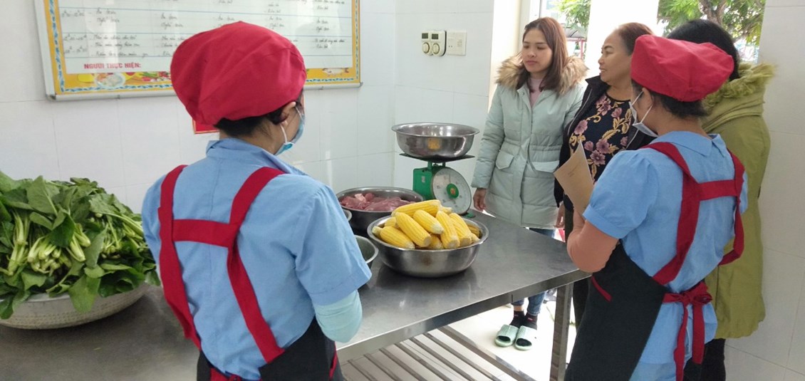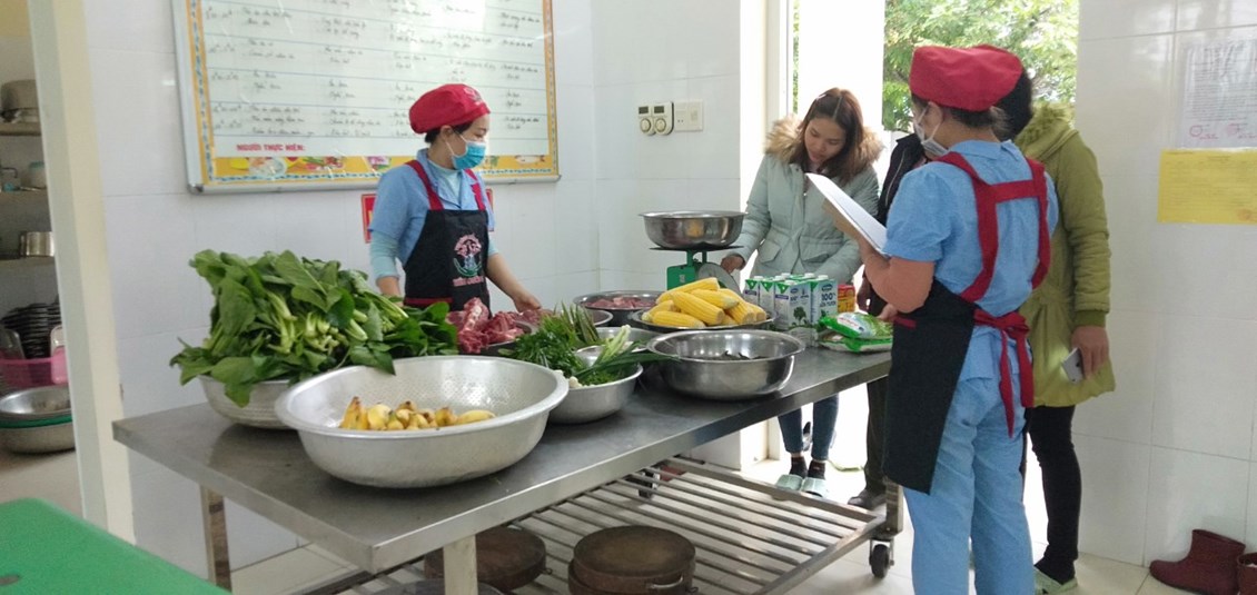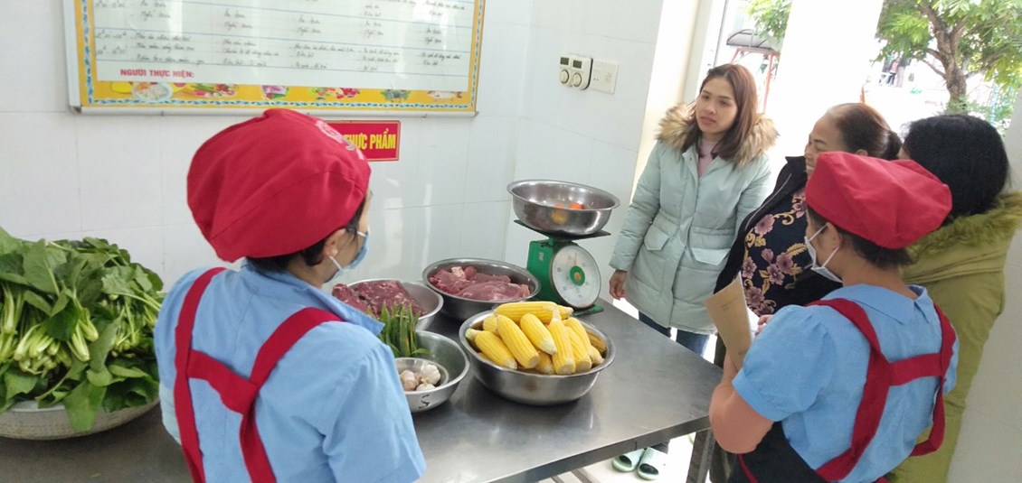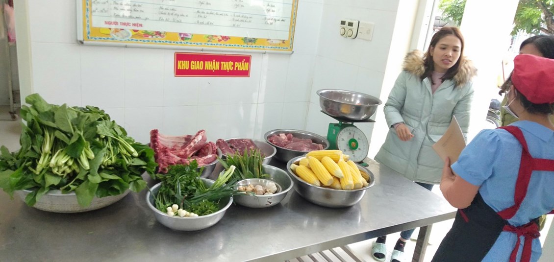 Thực hiện nhiệm vụ trọng tâm năm học, giải pháp sáng tạo của trường "Sáng tạo trong xây dựng thực đơn, nâng cao chất lượng tổ chức bữa ăn, kết hợp tăng cường vận động cho trẻ trong trường mầm non". Trường mầm non Tiên Cường duy trì nghiêm túc việc giao nhận thực phẩm tay 4 theo đúng quy trình gồm đại diện BGH, tiếp phẩm nhà bếp, giáo viên và phụ huynh. Ngoài gia nhà trường còn đặc biệt trú trọng quan tâm đến công tác vệ sinh an toàn thực phẩm, kí kết với đơn vị cung cấp thực phẩm có chứng nhận, cam kết đảm bảo vệ sinh an toàn thực phẩm. Bên cạnh đó nà trường tiếp tục rà soát mua sắm bổ sung các trang thiết bị phục vụ sơ chế, chế biến các món ăn bằng đồ nốc, đảm bảo vệ sinh. Nhân viên nấu ăn duy trì thực hiên túc bếp ăn một chiều, xây thực thực đơn và chế biến phối hợp đa dạng nhiều loại thực phẩm, sáng tạo thực đơn 5 món, thực hiện lưu mẫu thức ăn trong kiểm thực 3 bước. Khi triển khai và thực hiện giải pháp trẻ hứng thú, ăn ngon miệng hơn, ăn hết xuất, phụ huynh rất yên tâm và đánh giá cao công tác tổ chức hoạt động chăm sóc, nuôi dưỡng trẻ của nhà trường. Dưới đây là một số hình ảnh ghi lại quá trình giao nhận thực phẩm buổi sáng của tổ nuôi: