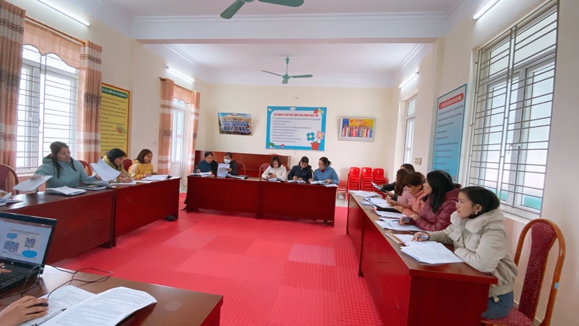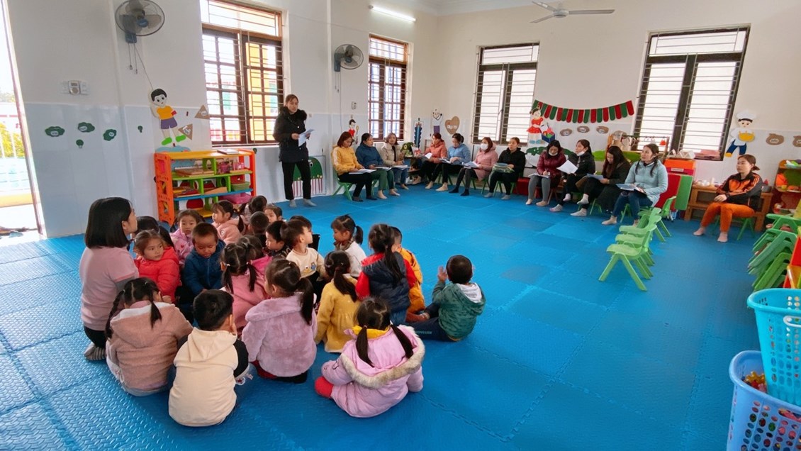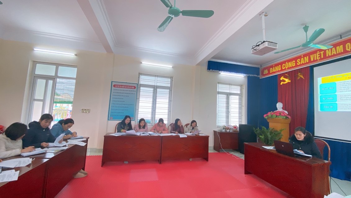 Về dự với điểm sinh hoạt bồi dưỡng chuyên môn của khối 4 có các đồng chí trong Ban giám hiệu, các đồng chí tổ trưởng chuyên môn và giáo viên các lớp. Đồng chí Nguyễn Thị Duyên-Phó hiệu trưởng nhà trường đã xin ý kiên của các đồng chí trong ban giám hiệu, tổ trưởng chuyên môn, giáo viên về kết quả mà buổi bồi dưỡng chuyên môn mà tổ 4 tuổi đã thực hiện. Các thành viên về dự đánh giá cao kết quả của buổi sinh hoạt chuyên môn mà tổ 4 tuổi đã làm được rất tốt, đạt được mục tiêu đề ra. Cụ thể như sau: