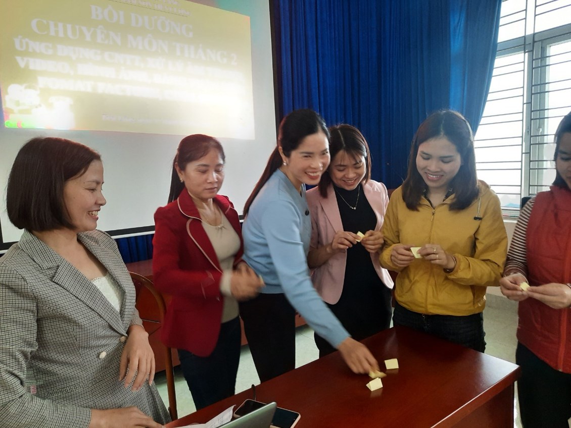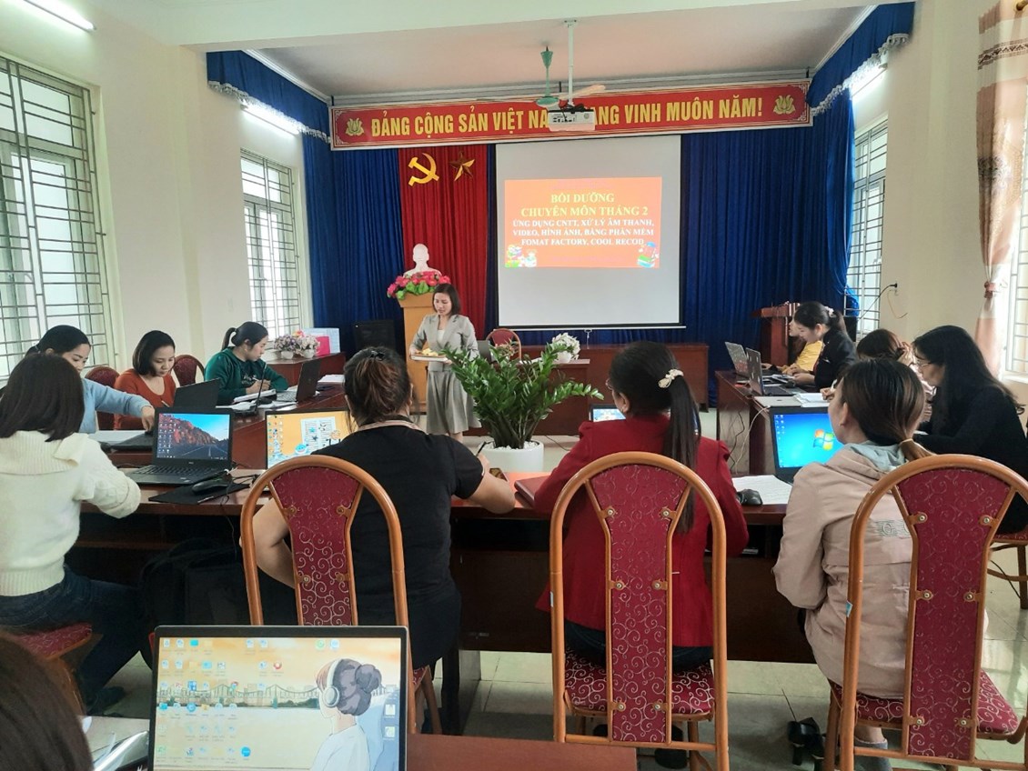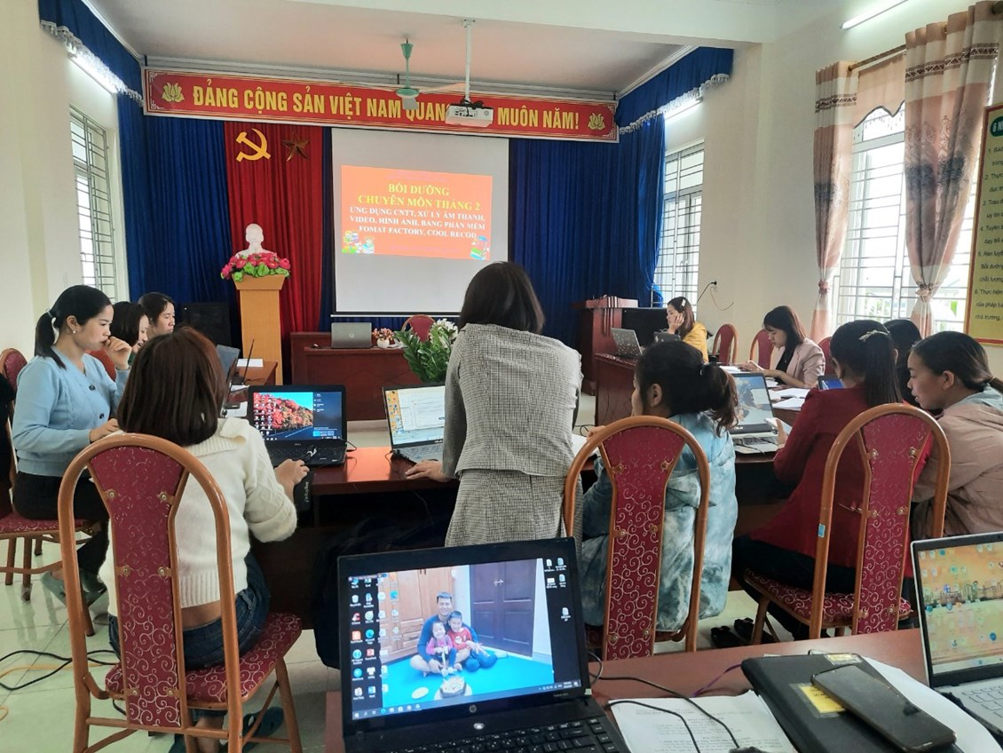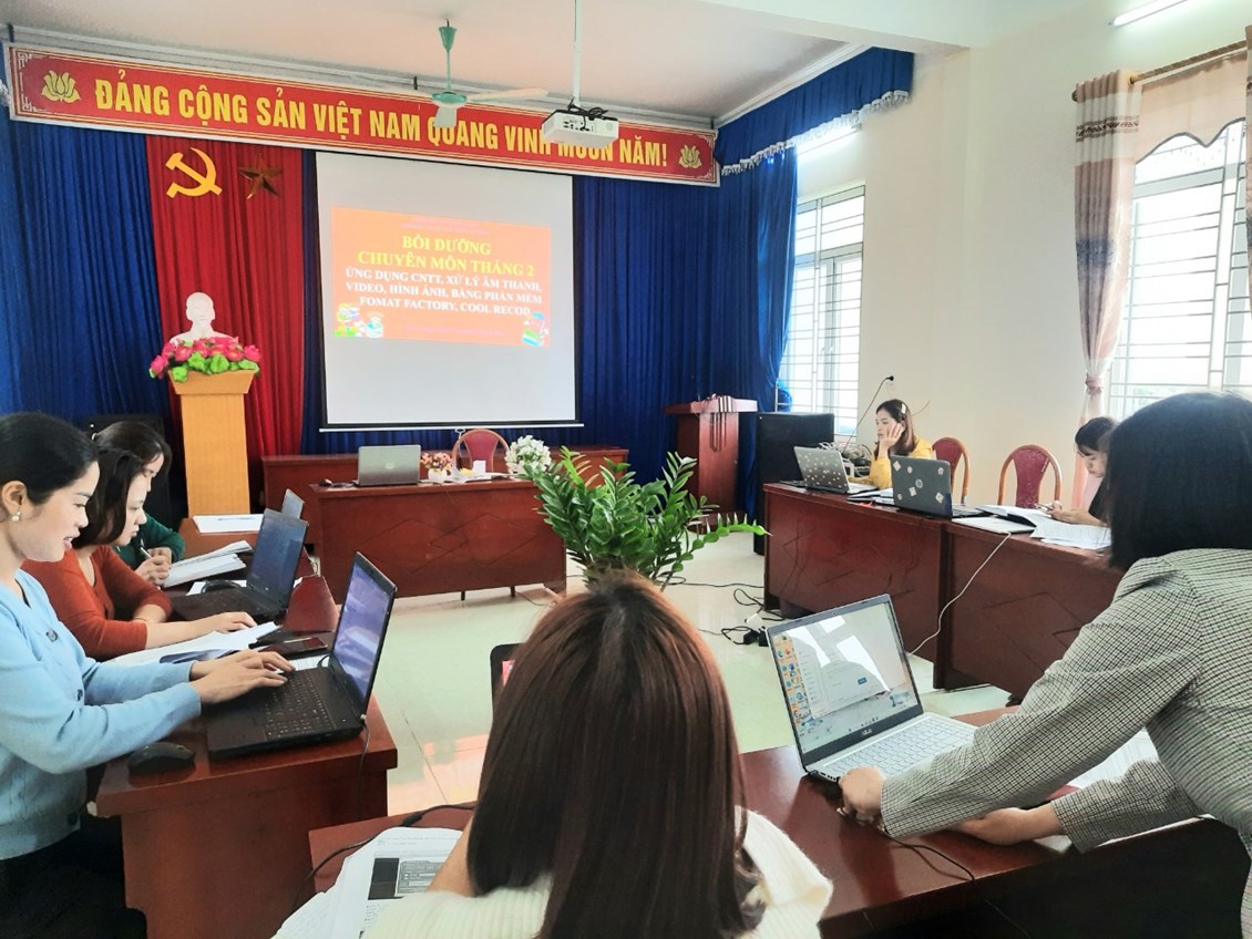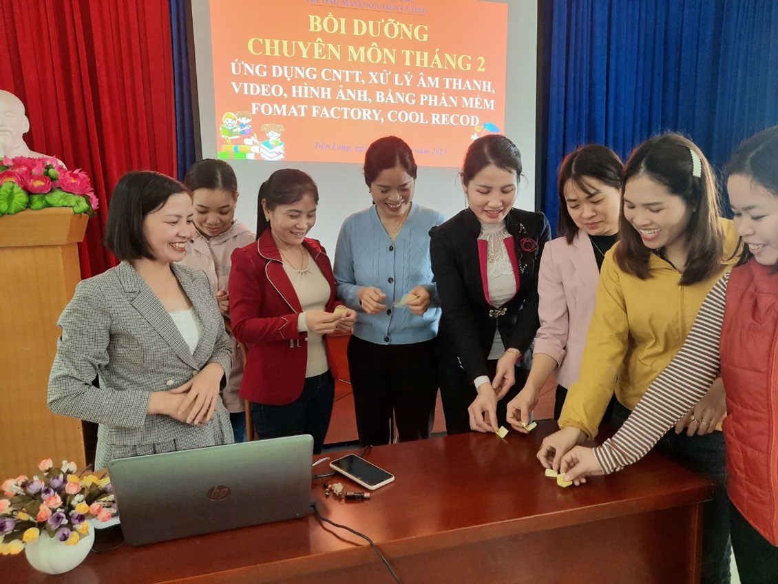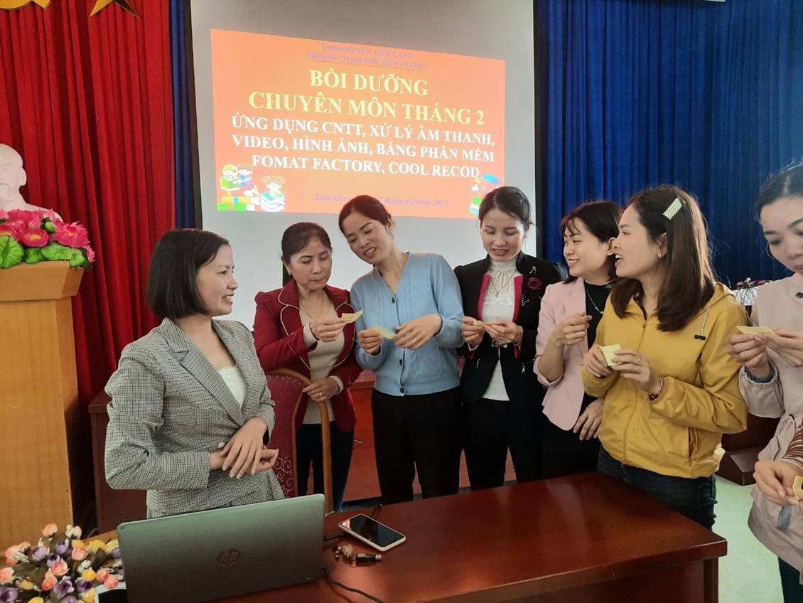 Trong 02 ngày (Ngày 07,13/02/2023) bộ phận chuyên môn trường mầm non Tiên Cường đã tiến hành bồi dưỡng chuyên môn cho tất cả đội ngũ giáo viên nhà trường với rất nhiều nội dung với mục đích nâng cao kỹ năng ứng dụng công nghệ thông tin vào thiết kế tổ chức các hoạt động chăm sóc giáo dục trẻ và đáp ứng mục tiêu chuyển đổi số trong hoạt động giáo dục mà toàn ngành đã phát động.