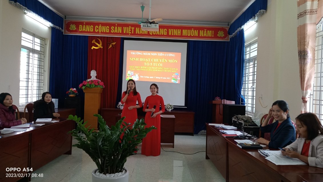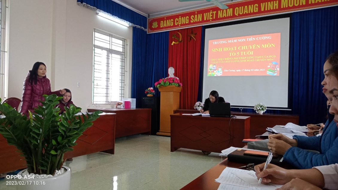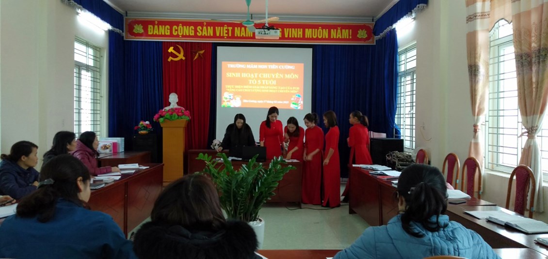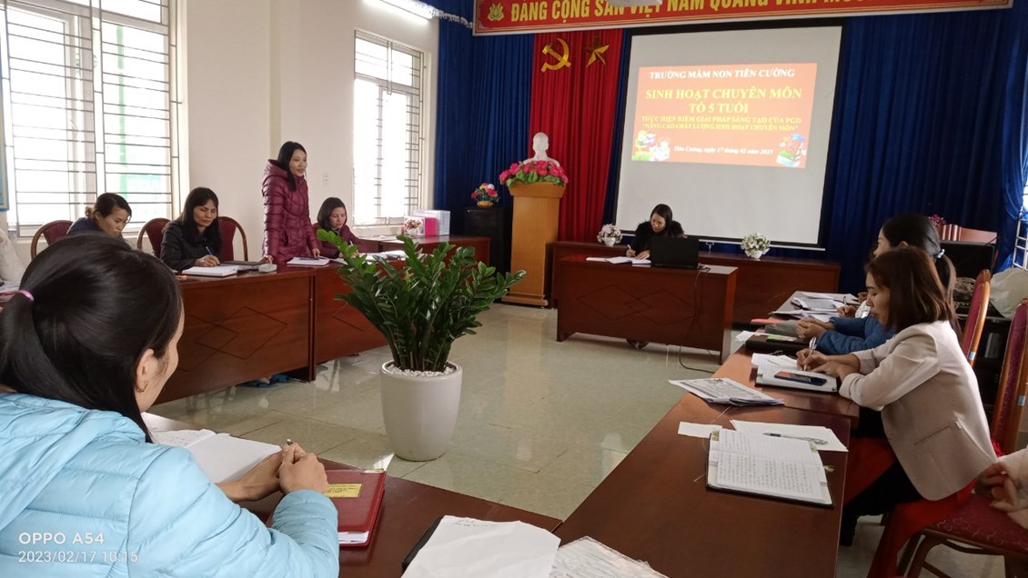 Căn cứ kế hoạch giải pháp sáng tạo số 38/KH-GD&ĐT 07/10/2022 của Phòng Giáo dục và Đào tạo; kế hoạch số 53/KH-GD&ĐT 08/10/2022 của Trường mầm non Tiên Cường về việc thực hiện giải pháp sáng tạo của PGD&ĐT “Nâng cao hiệu quả, chất lượng công tác bồi dưỡng chuyên môn trong các cơ sở giáo dục mầm non góp phần triển khai thực hiện tốt chương trình giáo dục mầm non”năm học 2022 - 2023. Bộ phận chuyên môn nhà trường đã giao nhiệm vụ làm điểm về công tác bồi dưỡng chuyên môn cho tổ 4 tuổi vào tháng 12/2022, tổ 5 tuổi vào tháng 2/2023.