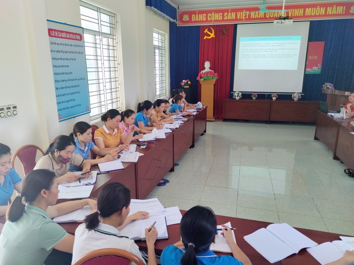 Kết thúc tập huấn cán bộ giáo viên nhân viên trong nhà trường đã được tuyền tải đầy đủ các nội dung và nắm được cơ bản của từng chuyên đề. Hy vọng với các kiến thức tích luỹ được sau buổi học sẽ được cán bộ giáo viên nhân viên trong nhà trường vận dụng tốt vào việc thực hiện nhiệm vụ chuyên môn của mình.