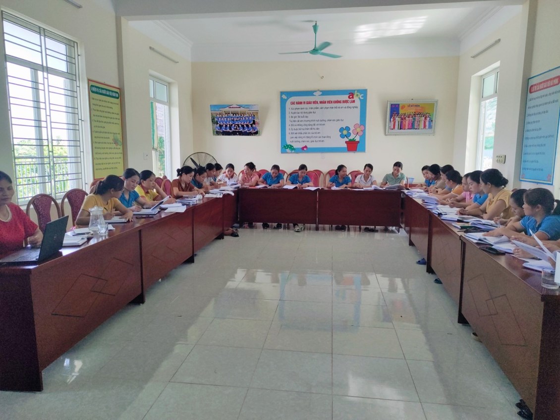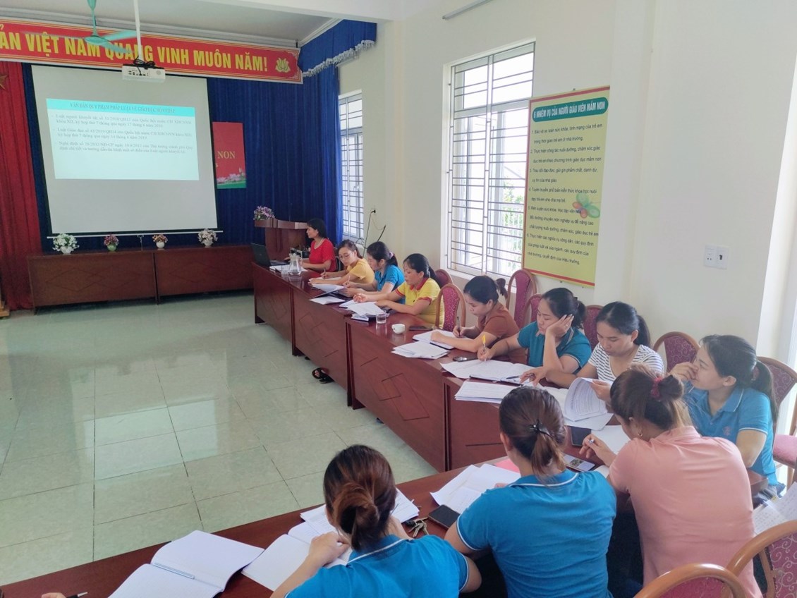 Thực hiện chương trình công tác tháng 8, sự chỉ đạo chuyên môn từ Lãnh đạo PGD&ĐT huyện Tiên Lãng đề nghị các trường chuẩn bị tốt mọi điều kiện cho năm học mới. Bên cạnh việc tu sửa CSVC trong và ngoài lớp học, Ban giám hiệu Trường mầm non Tiên Cường đã tiến hành bồi dưỡng chuyên môn cho 100% đội ngũ cán bộ giáo viên nhân viên trong nhà trường với các nội dung mà Ban giám hiệu và giáo viên cốt cán của nhà trường đã được lĩnh hội tại đợt sinh hoạt chuyên môn do PGD&DT tổ chức bồi dưỡng: