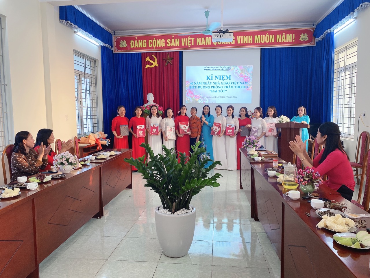 Hoà chung với niềm phấn khởi của ngành giáo dục và đào tạo cả nước kỉ niệm 41 năm ngày nhà giáo Việt Nam (20/11/1982 - 20/11/2023). Nhân dịp này trường mầm non Tiên Cường tổ chức kỉ niệm 41 năm ngày nhà giáo Việt Nam và biểu dương phong trào hai tốt.