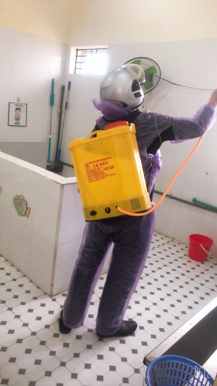 Để phòng tránh các dịch bệnh truyền nhiễm, đảm bảo sức khỏe cho các em học sinh cũng như cán bộ giáo viên nhân viên nhà trường chiều ngày 04/03/2023 trường mầm non Tiên Cường đã tiến hành thực hiện quy trình phun thuốc muỗi đúng cách. Trước khi phun thuốc, đồ đạc phục vụ hoạt động bán trú, đồ dùng đồ chơi … trong lớp học đều được che đậy cẩn thận. Nhân viên phun thuốc sử dụng các bình tồn lưu chứa hỗn hợp thuốc pha theo tỷ lệ nhất định phun đều vào toàn bộ bề mặt của tường, vách, rèm cửa, bàn ghế. Sau khi phun bên trong các lớp học, nhà vệ sinh, tiếp tục phun bên ngoài khuôn viên nhà trường. Dùng máy phun phủ đều toàn bộ bề mặt tường phía ngoài hành lang, bụi cây, bãi cỏ, đường cống, …nhằm diệt trừ và phá hủy nơi trú ngụ, sinh sản của muỗi và các loại côn trùng khác.