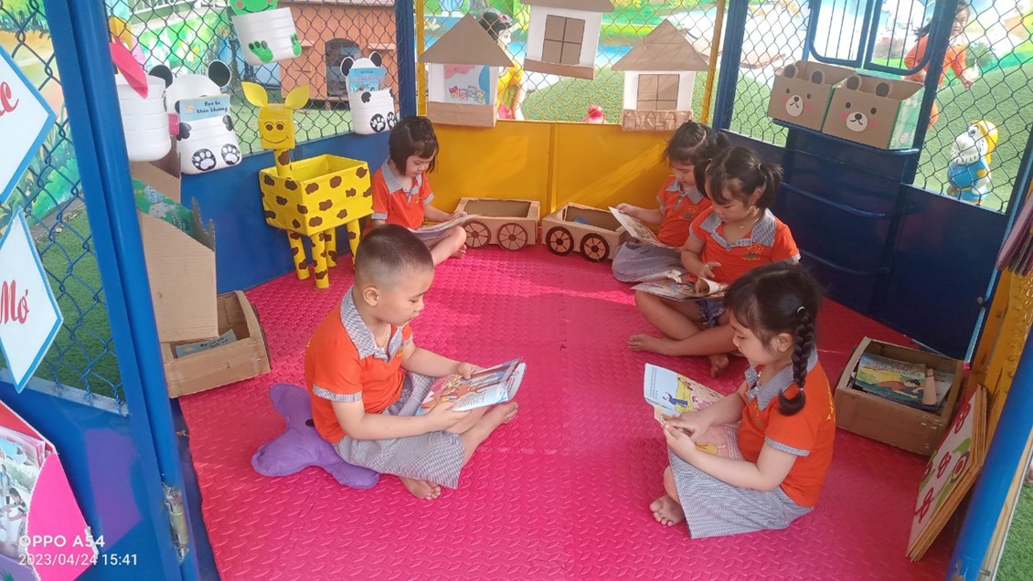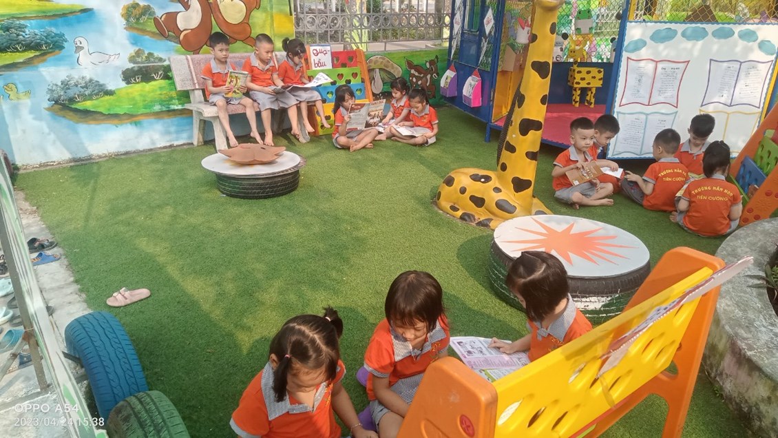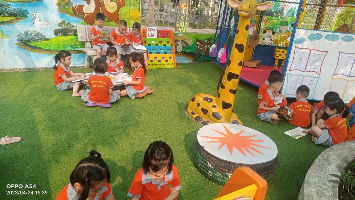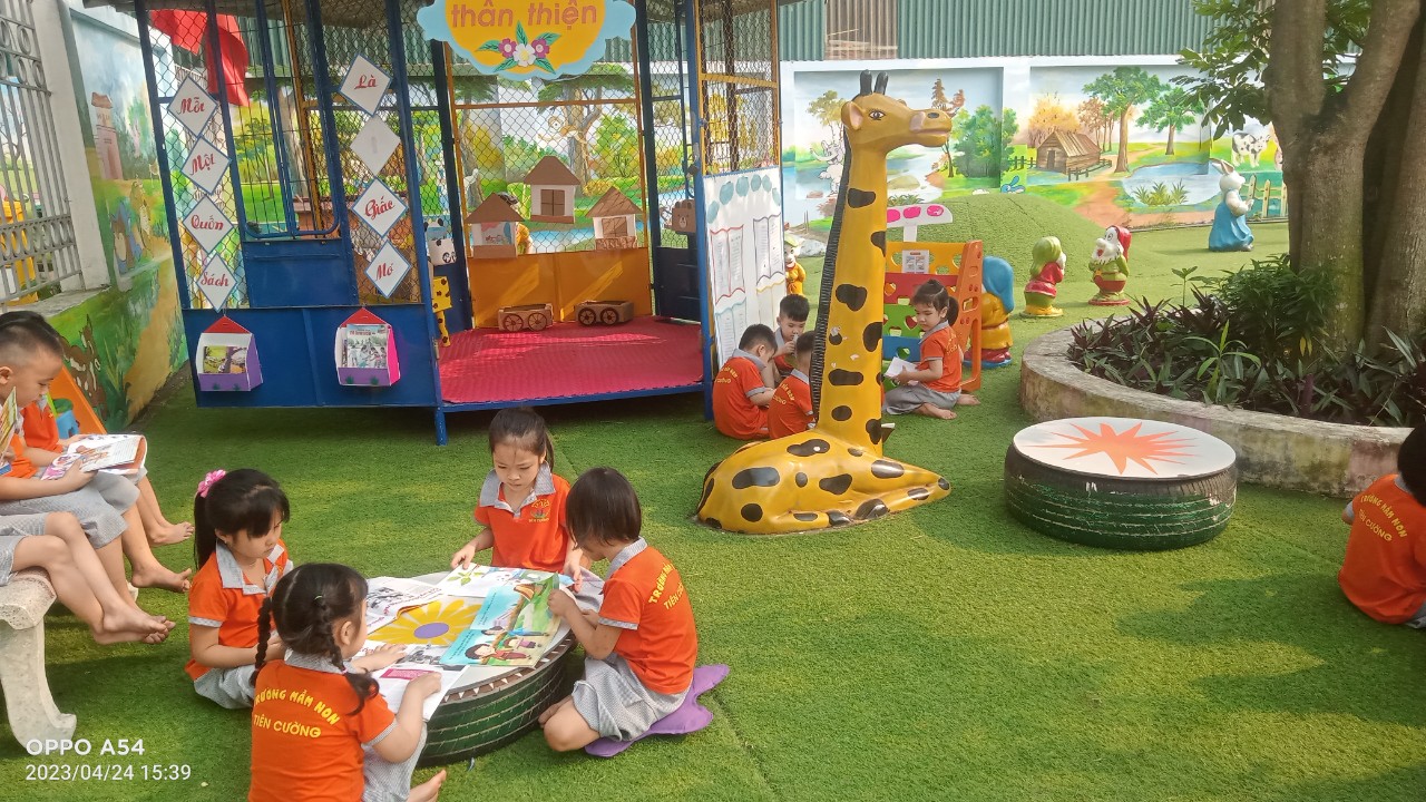 Hưởng ứng và thực hiện kế hoạch số 49/KH-UBND ngày 17 tháng 3 năm 223 của UBND huyện Tiên Lãng về việc tổ chức ngày ngày Sách và Văn hóa đọc Việt Nam nhằm tôn vinh giá trị ý nghĩa và tầm quan trọng của sách và “ Văn hóa đọc” trong đời sống tinh thần của con người. Khuyến khích đưa phong trào đọc sách trở thành thói quen, nét đẹp văn hóa trong cơ quan đơn vị. Chính vì vậy, Trường mầm non Tiên Cường đã triển khai kế hoạch đến toàn thể cán bộ giáo viên nhân viên trong nhà trường, phát động tuần lễ đọc sách (từ ngày 17/4-24/42023), tổ chức các giờ đọc sách cho trẻ lồng ghép vào các thời điểm trong ngày. Bên cạnh đó nhà trường còn chỉ đạo các lớp làm tốt công tác tuyên truyền để phụ huynh thấy được giá trị tầm quan trọng của việc tạo cho con em mình thói quen đọc sách từ đó tích cực ủng hộ những cuốn sách, truyện cho lớp; làm phong phú hơn tủ sách của lớp.